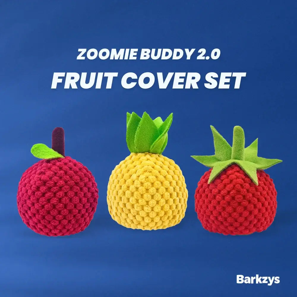 Give your dog’s favorite toy a fresh new look! This set includes all 3 plush fruit covers (Pineapple, Apple, Tomato) designed to fit perfectly over the Zoomie Buddy 2.0. They reduce noise on hard floors, add extra protection, and are machine washable for easy cleaning. Fun, functional, and adorable! 🐾
