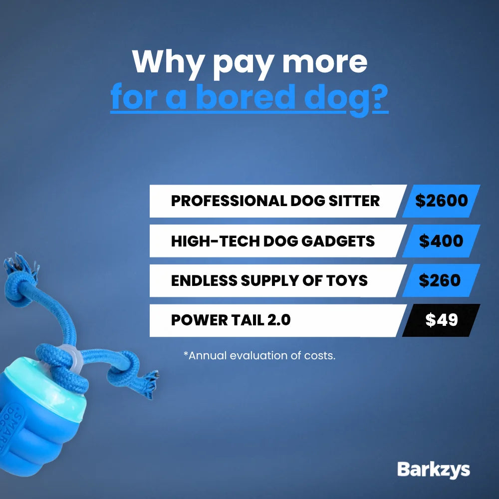 Most dog toys break fast, get stuck, or bore your pup. The Power Tail 2.0 is different—it's exciting, works anywhere, and lasts long. Why keep wasting money on flimsy toys that let you and your dog down? Invest in the Power Tail 2.0 and save yourself the frustration. Your dog deserves nothing but the best.